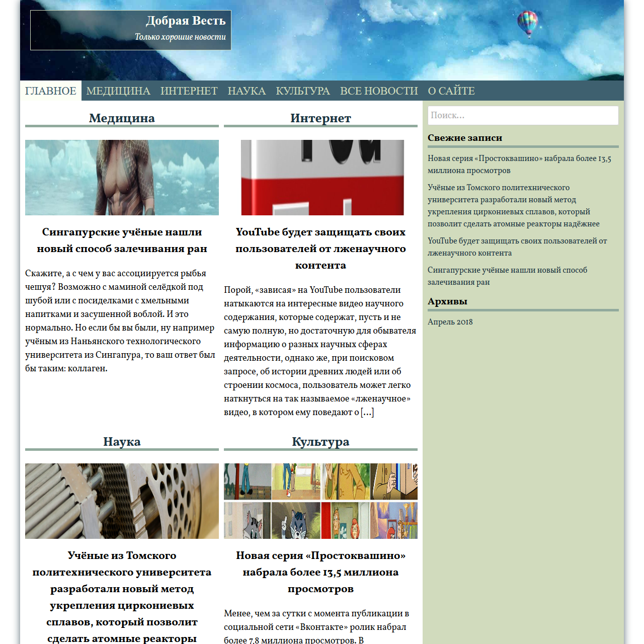 Сайт позитивных новостей Разделы: статьи, рубрики, обратная связь
