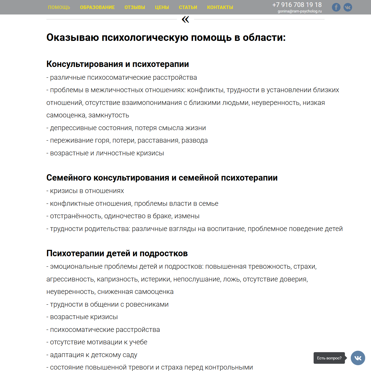 Сайт: Частный психолог в Раменском - Надежда Гонина Адрес: ram-psycholog.tilda.ws Старый адрес: ram-psycholog.ru CMS: Tilda Дата создания: 7 июня 2019